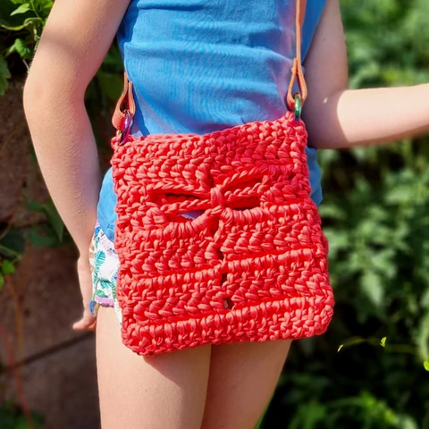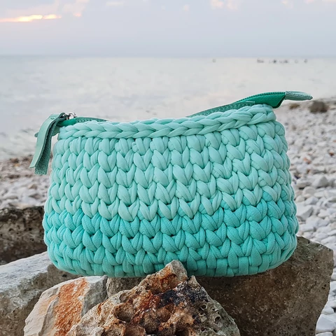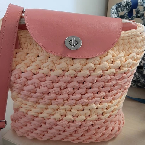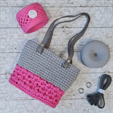 A texturált pólófonal szálanyaga egy picit rugalmas, így cizeláltabb mintákat is horgolhatunk, mint például a videóban bemutatott táskán is látható. Ahol több szálas a minta, azt is gördülékenyen létre tudjuk hozni ezzel a fonallal, mert nem lesz olyan merev, így kényelmesen horgolhatunk.