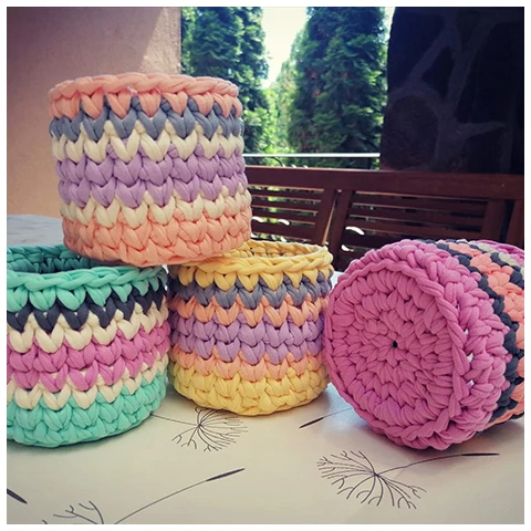 Szintén nagyon szeretjük kosarak, tárolók és textil ékszerek készítésénél, de fonalvezető állványhoz is sikerrel alkalmaztam. A szálak kissé bordázott felszíne miatt a horgolt alkotás felülete texturált lesz, ami természetesebb hatást ad a munkánknak, szemben a teljesen sima felület merev eleganciájával.